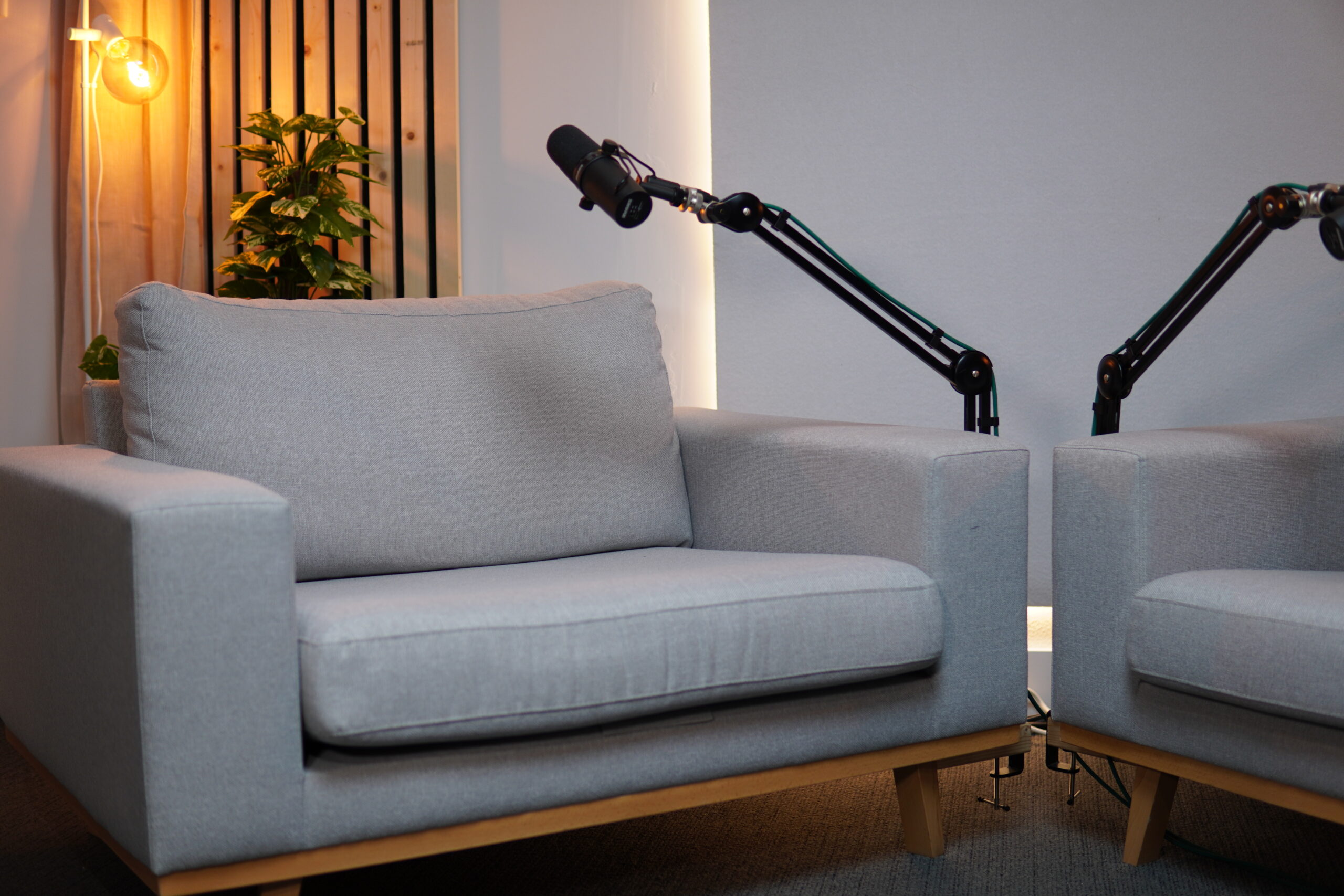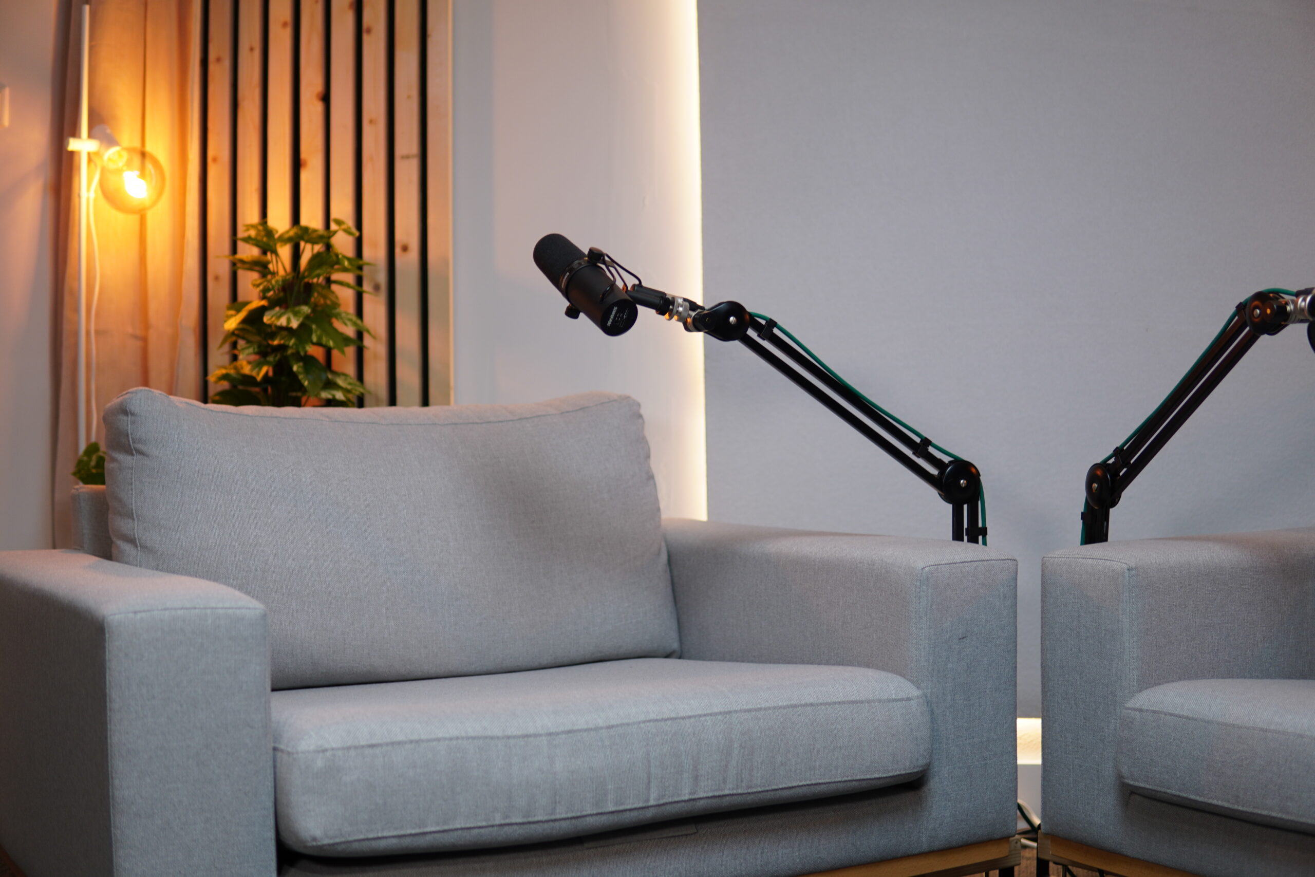 Twee professionele studio’s. Of je nu kiest voor de comfortabele setting met sofa’s of de strakke tafelopstelling, beide studio’s zijn ontworpen voor podcasts en videocontent van het hoogste niveau. Met kraakhelder geluid en haarscherp beeld zorgen we ervoor dat jouw verhaal perfect wordt vastgelegd.